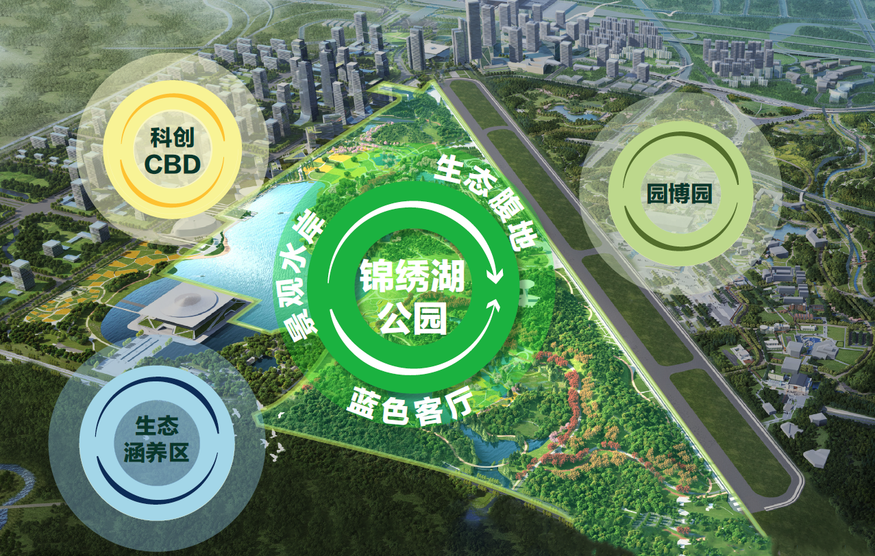 四象:多元融合的功能板块(如园博园、城市展园、智慧休闲区、科创门户区等)。