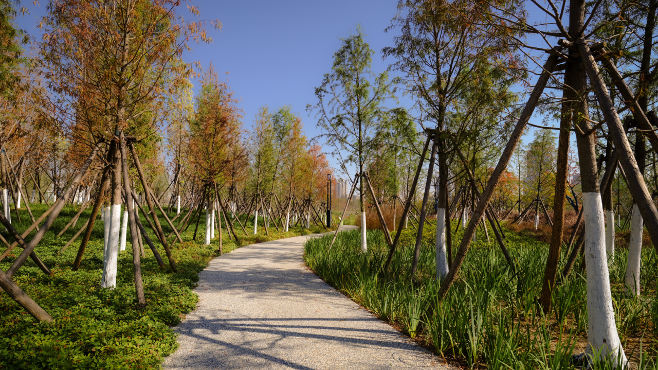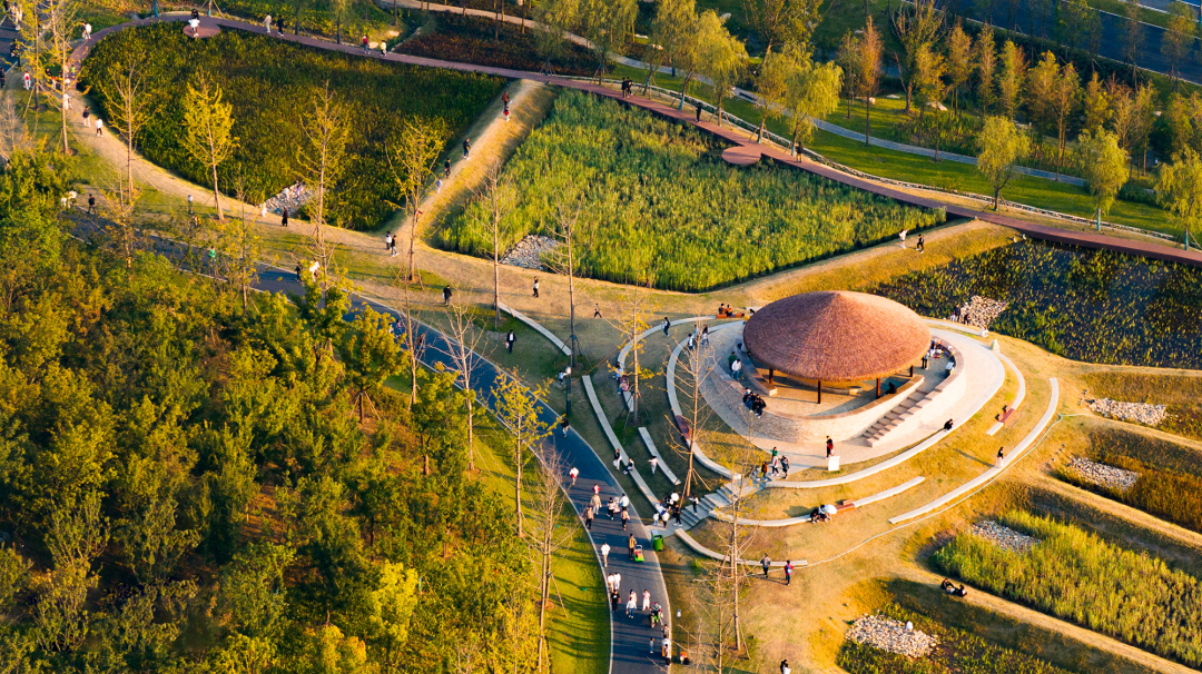以 “人境共生” 为核心导向,构建了多层级植被与水系交织的生态基底,让市民在游赏中获得沉浸式的绿意感知;线性慢行系统依循场地肌理自然延展,既串联起全域空间,又赋予游赏过程舒适的松弛感;公共活动节点巧妙嵌入自然环境,既保留了场所的生态野趣,又强化了市民的空间归属感,最终实现了生态功能与公共体验的有机统一,是兼具品质与温度的城市绿色开放空间。